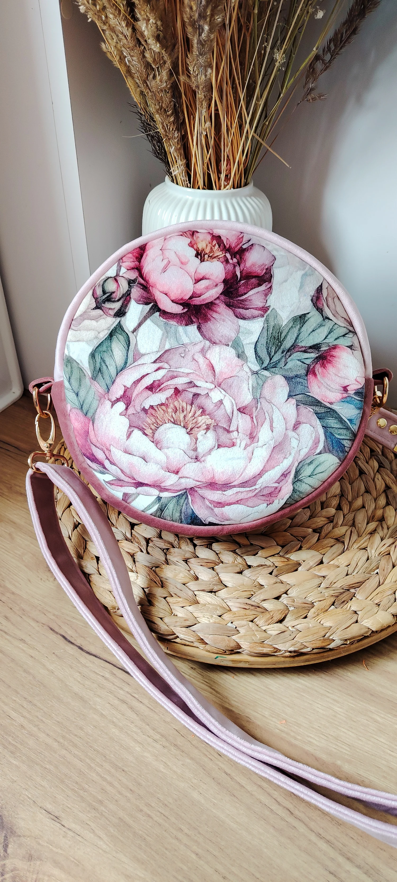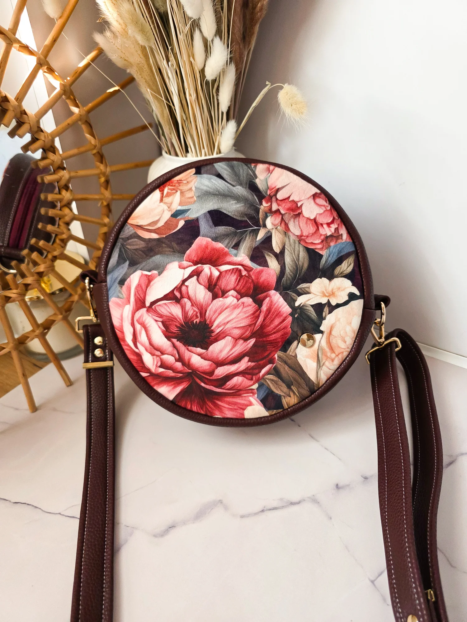 Okrągła torebka - średniej wielkości torebka, która pomieści to co najważniejsze (portfel, telefon, klucze i kilka innych drobiazgów)